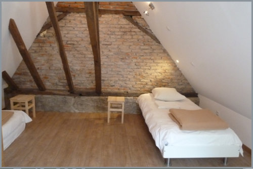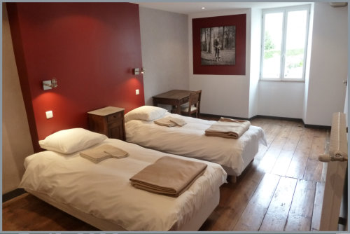La première chambre dispose de 2 lits et est traversante. Elle permet un accès à la seconde chambre dans laquelle se trouvent 2 autres lits et la salle de bains pour ces 4 litsDemi pension à 4 : € 44Sans DP à 4 : € 31Demi pension à 3 : € 47Sans DP à 3 : € 34